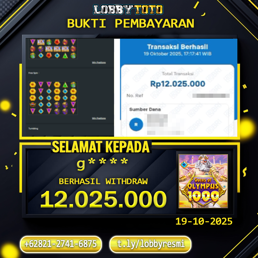 Selamat Kepada Member LOBBYTOTO dengan USER ID g**** BERHASIL WITHDRAW Rp. 12.025.000.